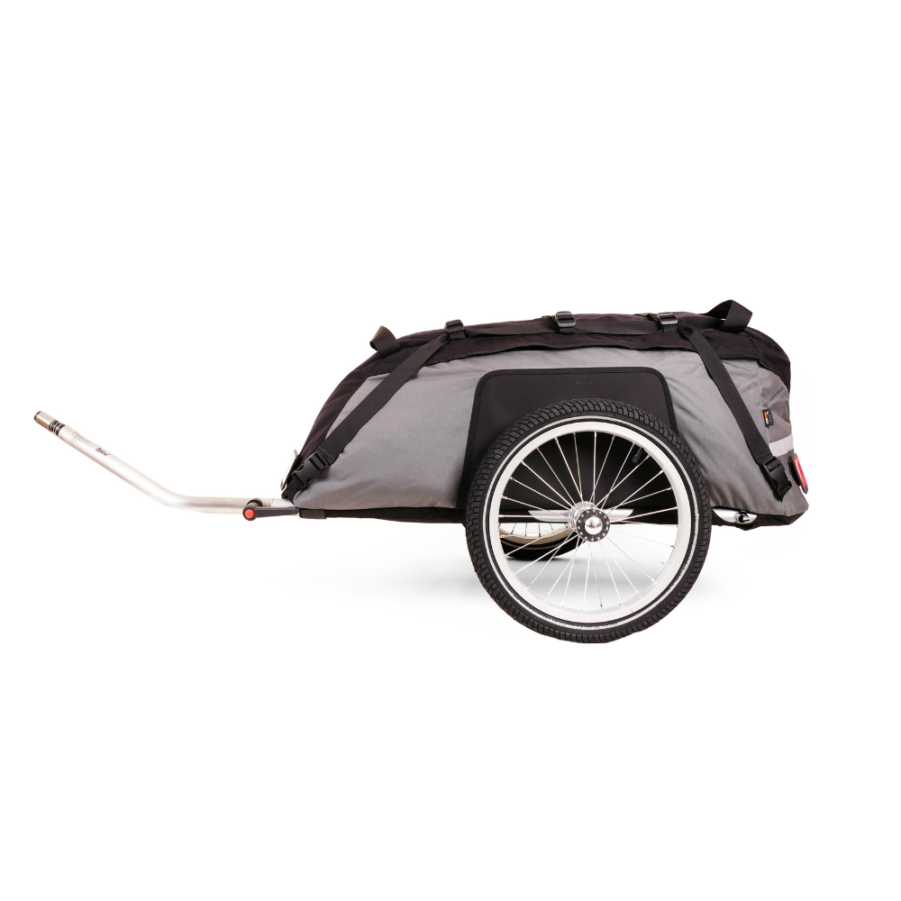 La remorque pour vélo Cyclone IV Trekking fait partie de la quatrième génération de la remorque deux roues Cyclone pour vélo qui a été plusieurs fois gagnante de tests dans le magazine Op Pad. Les remorques Cyclone sont utilisées dans le monde entier pour les vacances, les randonnées ou même les expéditions à vélo. Grâce à sa robustesse et sa résistance minimale au roulement, c'est la remorque idéale pour chaque randonnée à vélo avec bagages. Disponible en 2 versions: pour les vélos ayant une roue arrière de 16-20 pouces et les vélos ayant une roue arrière de 26-29 pouces.
