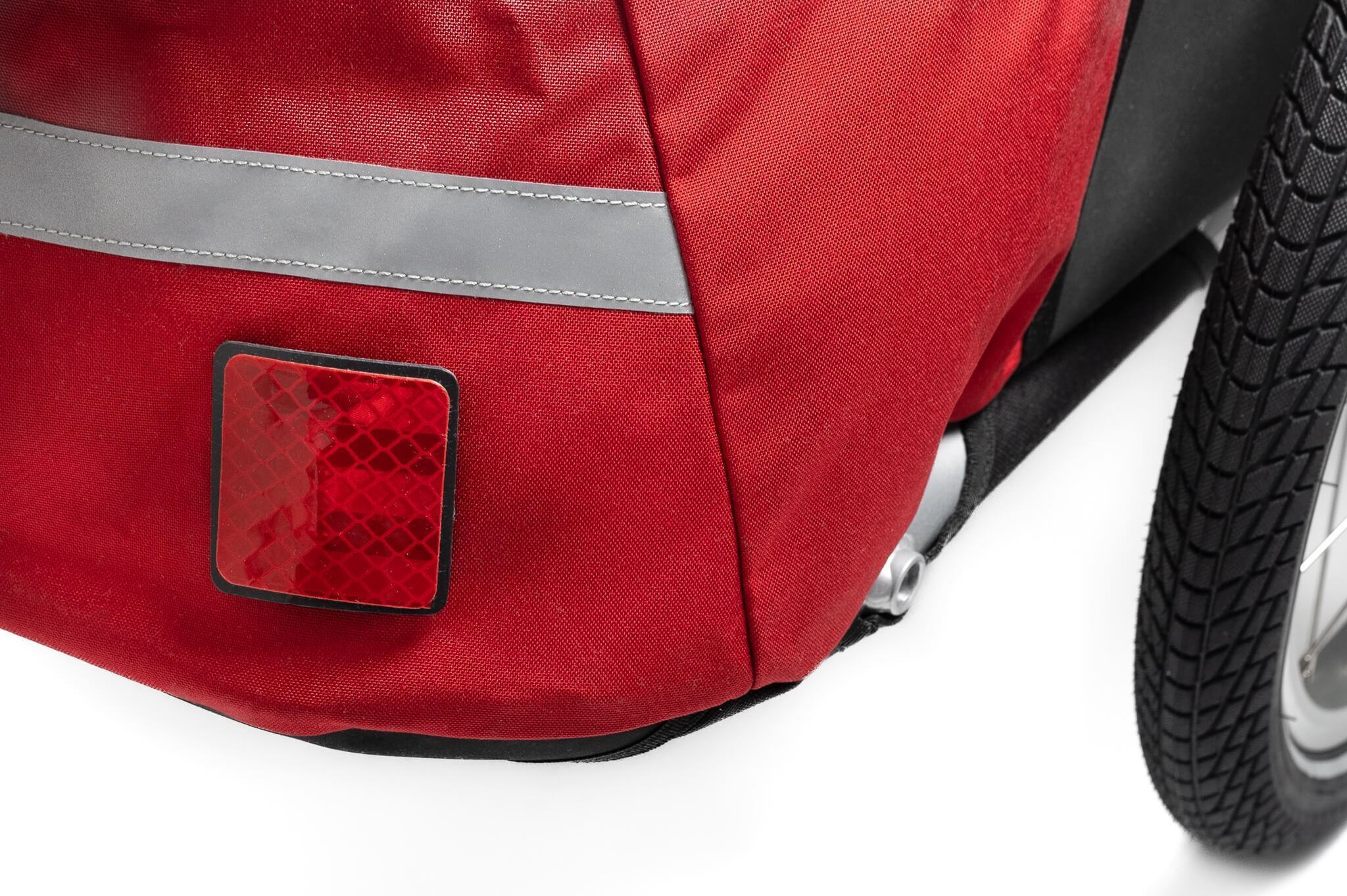 Le Cyclone est un véhicule à deux roues, ce qui permet à cette remorque de vélo de se stabiliser d'elle-même et de ne pas affecter la conduite du vélo. De plus, dans la plupart des cas, vous pouvez simplement mettre le vélo sur sa béquille avec la remorque pendant une pause sans qu'il ne bascule. Grâce à la connexion de l'attelage sur le moyeu, votre porte-bagages reste libre pour transporter des bagages ou un enfant.