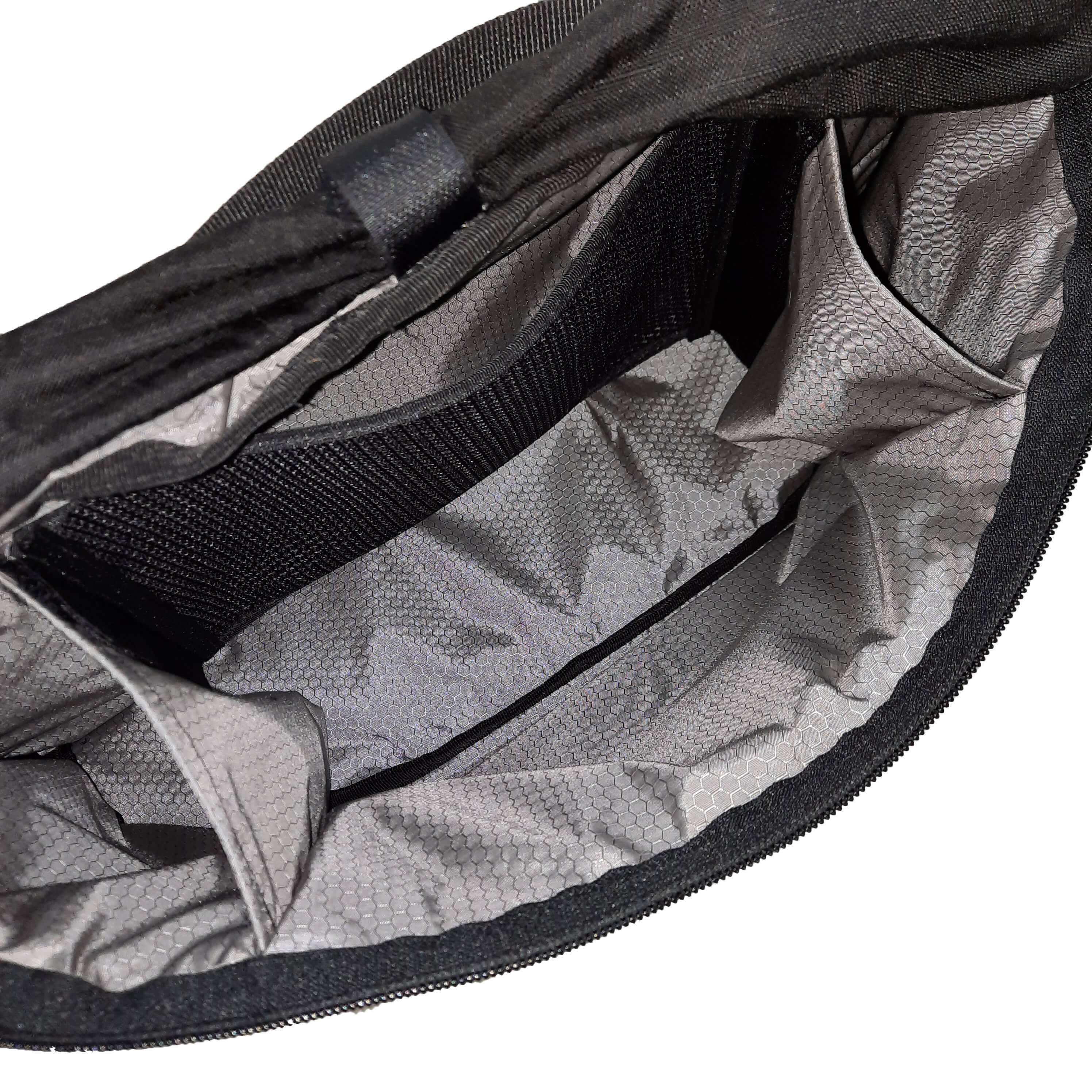 Avec 12 litres et 330 grammes, il est compact et il offre un espace pour les affaires que vous souhaitez garder à portée de main et que vous souhaitez ranger correctement. La bandoulière fournie permet de le prendre comme un sac à main lorsque vous décidez de laisser votre vélo garé, par exemple lorsque vous souhaitez vous promener dans un magasin ou visiter un point touristique. Il vous permet d'emporter facilement vos objets de valeur avec vous. L'intérieur du sac comprend deux compartiments bouteilles et il y a une petite poche supplémentaire en filet.
