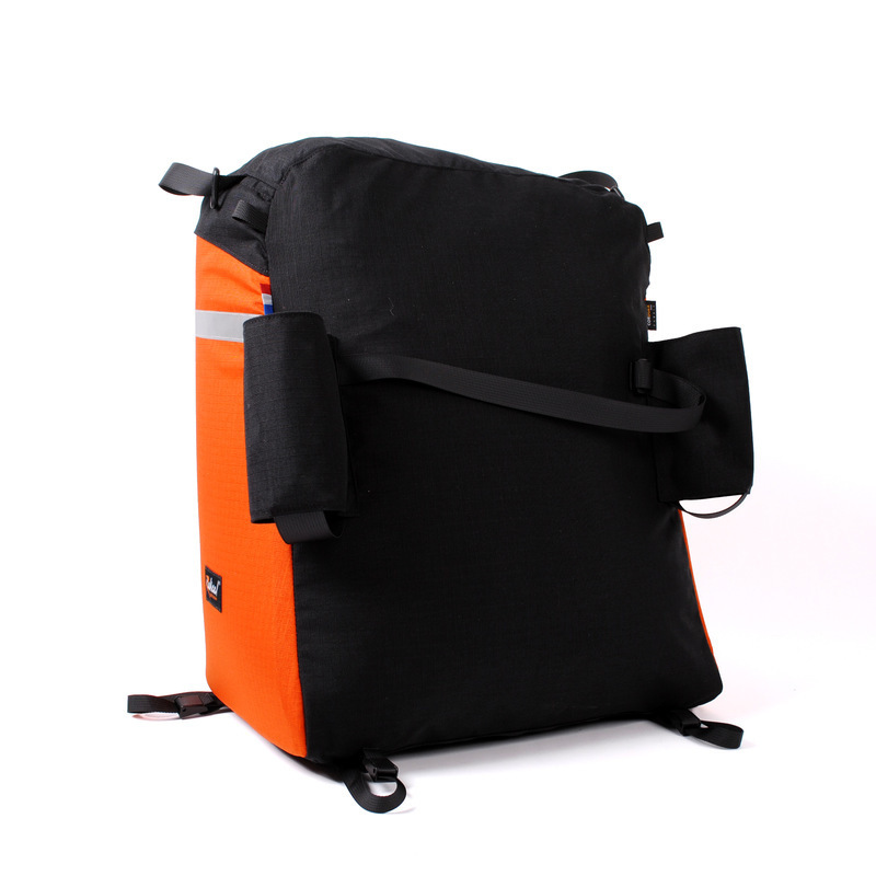 Le Jumbo était conçu expres pour les trikes type Delta, comme le Sinner Comfort. Il repose gentiment entre les deux roues arrière sur une large porte-bagages. Un véritable remplacement du coffre de la voiture. Pour l'attacher à votre vélo couché, glissez la sangle de devant autour du dossier du siège et posez la sacoche sur le porte-bagages. Fixez la sacoche avec au moins deux des quatre sangles du dessous, autour du porte-bagage.