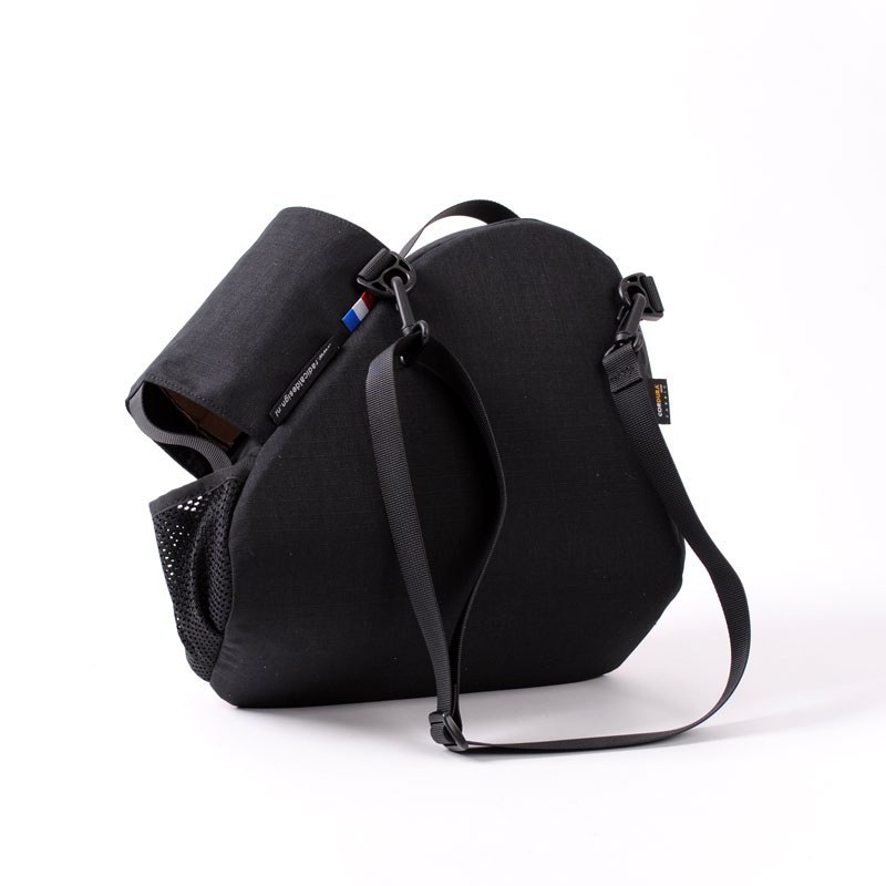 La Sacoche Vélomobile est la première sacoche qui est conçue spécialement pour le vélomobile. La sacoche de droite a un porte-bouteille intégré. La Sacoche Vélomobile est presque complètement rembourrée avec de la mousse, ce qui fait qu'elle tient debout toute seule. Le fond de la sacoche est incliné légèrement. Comme ça la sacoche s'adapte bien à la forme de la coque et ne se renverse pas. A l'extérieur de la sacoche il y a deux pochettes en maille pour garder des petits objets, à l'intérieur il y en a une troisième.